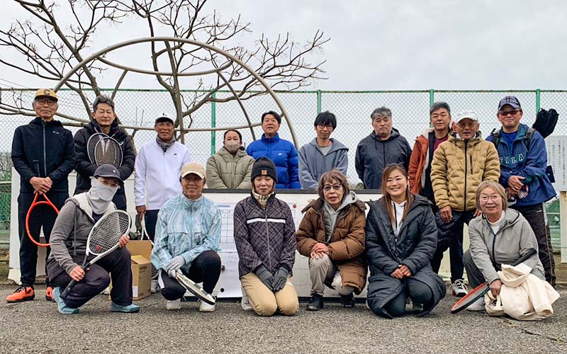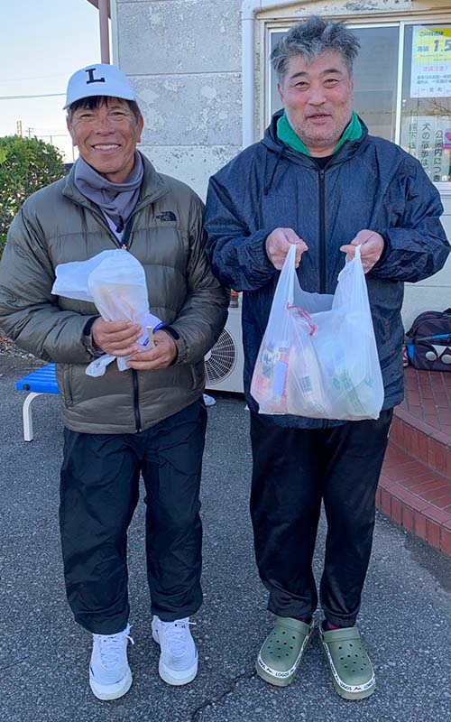 町営テニスコートにて、テニス部員内による新春イベントを行いました。朝から強風が吹き荒れる中、初心者から上級者まで16名にて、ダブルスの試合を楽しみました。お餅を食べたり、お楽しみ抽選会を楽しんだりと盛り上がりました!新春イベントの優勝ペアは「高橋・鈴木ペア」となりました。