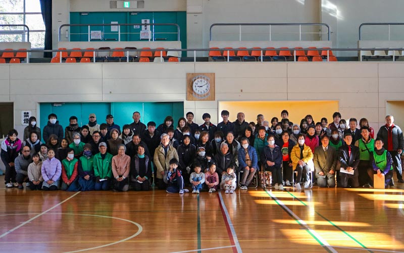 表彰式では入賞3チームに大場会長から賞状・賞品が授与されるとともに、最高齢参加の富塚信子さんの元気な健闘ぶりに記念品が手渡され、これからもみんなといっしょに競技を楽しんでいけるようにと参加者全員から大きな拍手が送られ、大会が締め括られました。