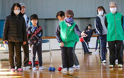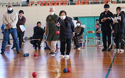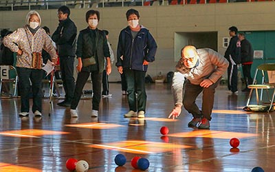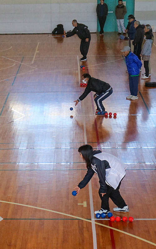 スポーツ協会主管のもと一宮町GSSセンターで「スポネットちば2025ボッチャ大会兼さいかつぼーる&モルクック体験会」が行われました。竹之内教育長を来賓に迎え、毎年開催で4回目となる今大会では、当協会は運営のみならず理事、評議員、協会加盟団体も競技にチーム参戦し、大会を大いに盛り上げてくれました。千葉市、茂原市など一宮町以外からも集った20チーム60人は小学校未就学幼児から最高齢93歳までと幅広い世代が同じコートでガチンコで競い合い、予選ブロックを勝ち抜いた上位5チームによる決勝トーナメントで大いに盛り上がりました。なお、大場スポーツ協会会長チームも決勝トーナメントに駒を進め健闘しましたが、惜しくも入賞を逃しました。