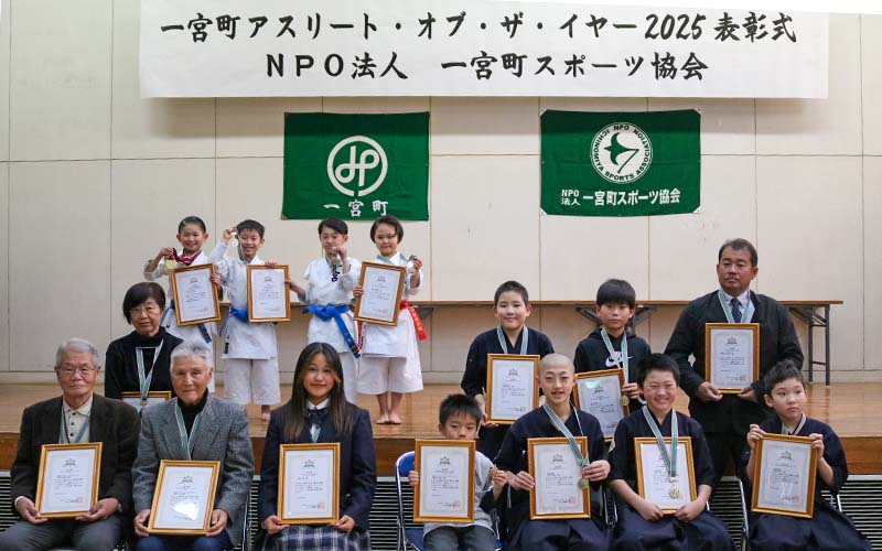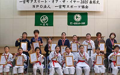 2025年度(2024年12月〜2025年11月)、一宮町で活躍したアスリートを一宮町スポーツ協会が独自に選考し、表彰するアスリート・オブ・ザ・イヤー授賞式が開かれました。スポーツ協会加盟のスポーツ団体、町内の小中学校、一宮に住所のある個人から推薦のあった多くの方々から選考した52名のアスリートのほか、彼らをサポートする保護者、チームの指導者・役員、スポーツ協会から会長、副会長を含め理事、評議員、総勢約100名が一宮町中央公民館に集合。午後2時から1時間半近くにわたって式典が繰り広げられました。町長、教育長、議会議長など町を代表する方々も来賓で祝辞を述べられ、努力賞、敢闘賞、協会会長特別賞など次々と壇上に上がって表彰され、最後に準アスリート・オブ・ザ・イヤーの3人、そしてアスリート・オブ・ザ・イヤー最高賞が発表、表彰されて今年の式典が終わりました。時を同じくしてイタリアで開催中の冬季オリンピックでも、日本選手の大活躍が連日報道されていましたが、この日表彰されたアスリートの中からも次のロサンゼルスオリンピックで活躍する選手が生まれるかも、という夢が現実になりそうな予感のする一日となりました。受賞されたアスリートの皆さん、本当におめでとうございました。これを機にさらにもう一段ステップアップされることをお祈りします。