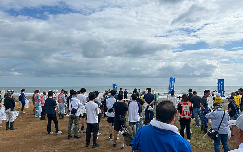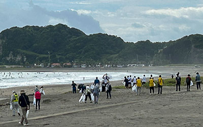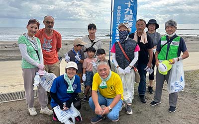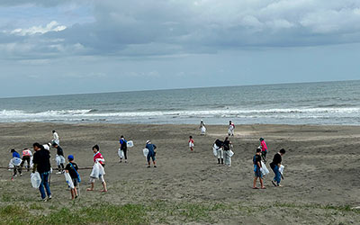 当協会からはテニス部、ゴルフ部、ジュニアバドミントン部、エンジョイスポーツクラブ、理事会の有志が参加し、砂浜のゴミを拾い集めました。